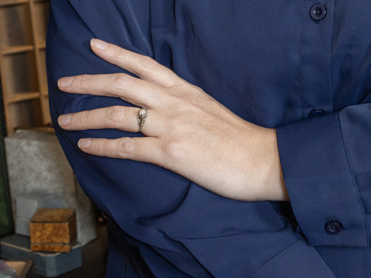 Art Deco Old Mine Cut Diamond Solitaire Engagement Ring