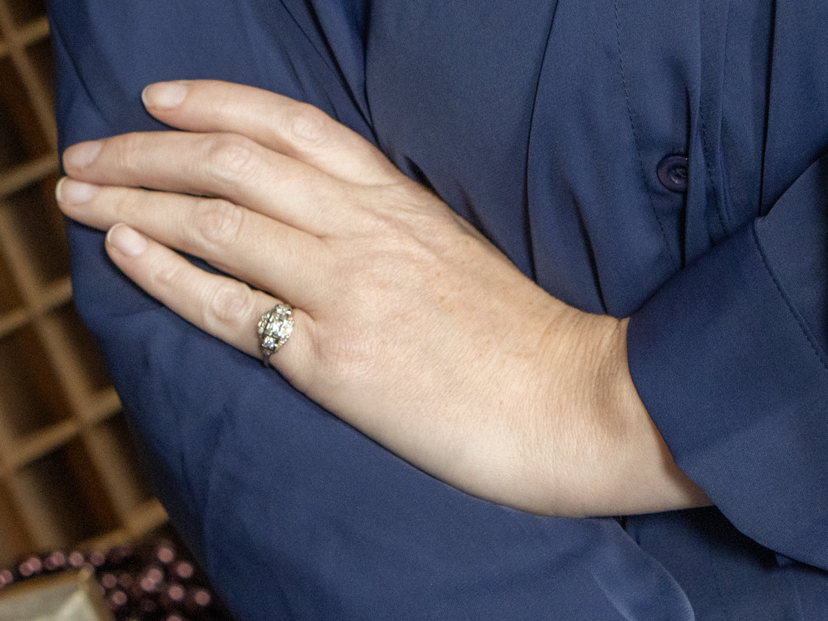 This elegant two-tone gold vintage ring showcases radiant European-cut diamonds, each nestled in a precisely aligned setting enhanced by single-cut diamond accents. Ideal for celebrating an engagement or anniversary, this timeless piece is thoughtfully crafted and ready to wear or present as a meaningful gift.