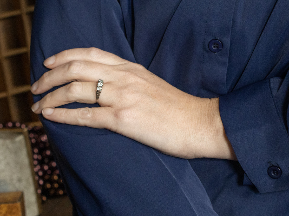 This ring features amazing quality filigree, with very fine detailing and structure featuring romantic curls and engraved patterns that are all in excellent condition and look to have never been worn! Straight from the Art Deco era, the filigree basket makes a wonderful setting for the three clear and bright old mine-cut diamonds set into the top! Perfect for an engagement or anniversary, this ring is a beautiful example of Art Deco workmanship at its finest!
