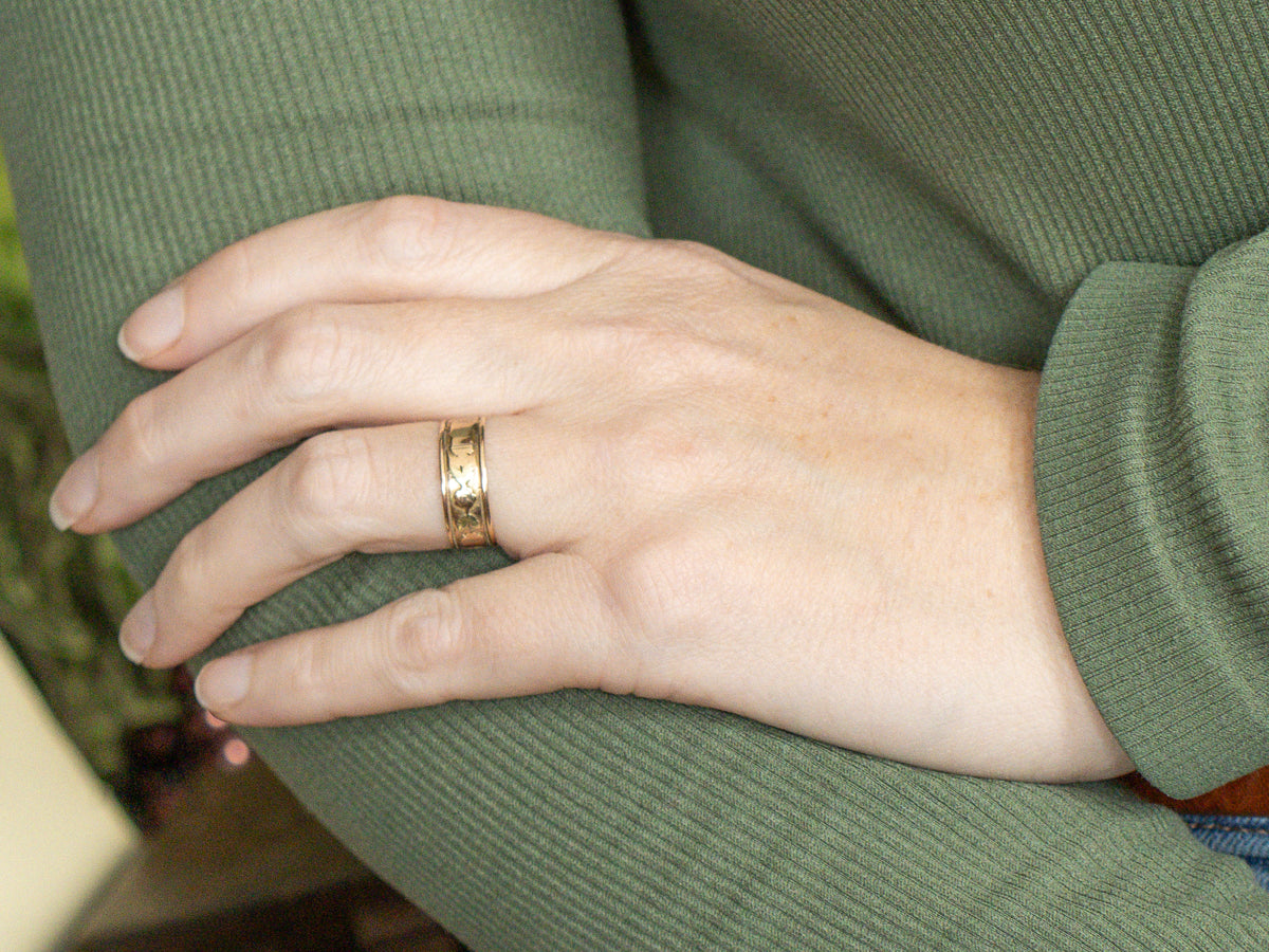 Metal: 10K Antique Green and Rose Gold Width of Band: 6.8 mm Height off Finger: 0.6 mm Ring Size: 7.75 Marks: "Lou" Stamped on the inside band