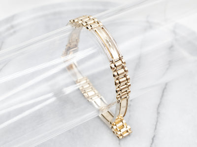 This classic yellow gold panel bracelet is a timeless accessory. Crafted from high-grade yellow gold, it features a sleek panel design and a comfortable fit. An elegant addition to any wardrobe.