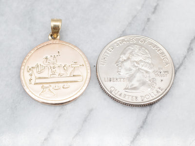 This charm depicts a telegram machine on one side and monogrammed "EFH" in Old English on the other. Crafted of yellow gold, the etching is detailed and beautiful!