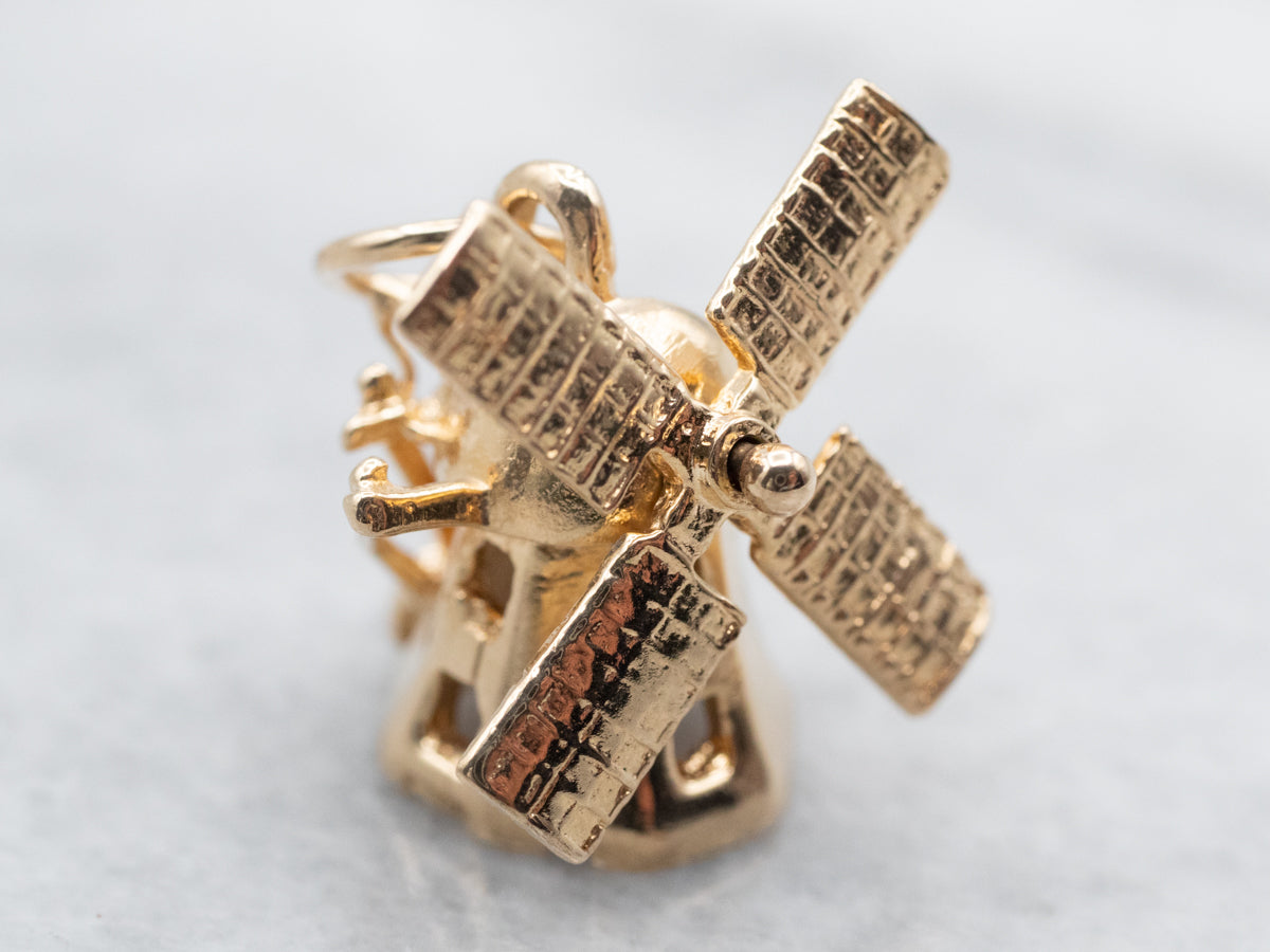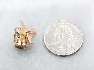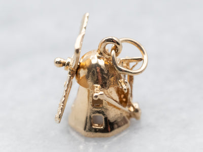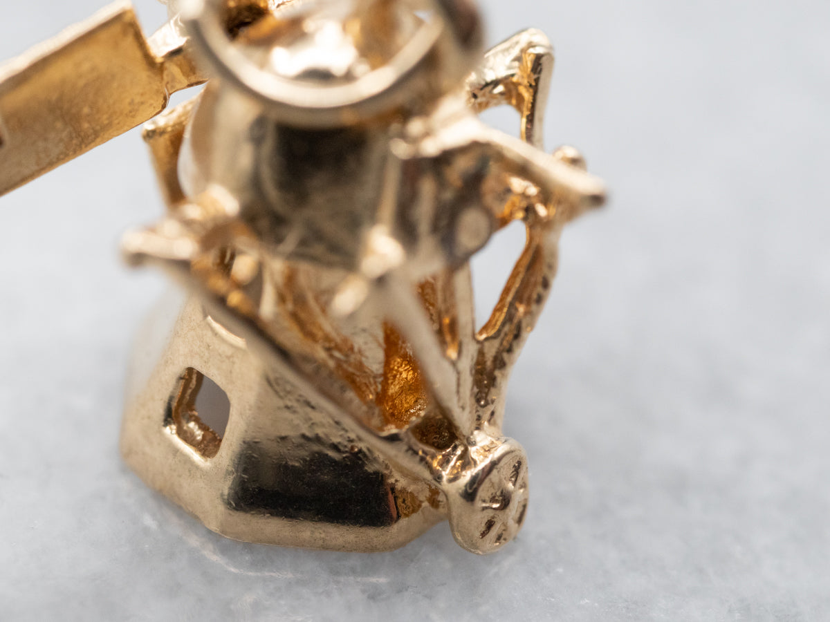 This windmill charm actually spins! Crafted of 14-karat gold, this little windmill is extraordinarily detailed. This piece is perfect for commemorating a trip to Holland!