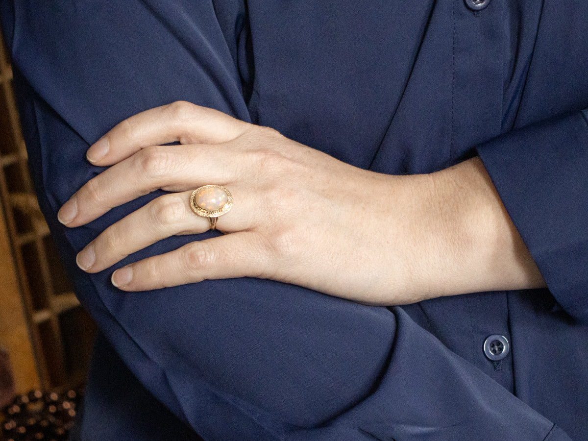 Victorian Revival Bezel Set Opal Cocktail Ring