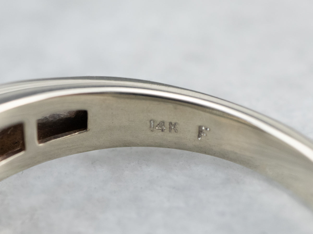 The color is even and well saturated, and the glitter is intense! Set low to the hand in a luxurious white gold and diamond mounting, this is a gorgeous ring that would make an excellent alternative to a traditional anniversary piece.