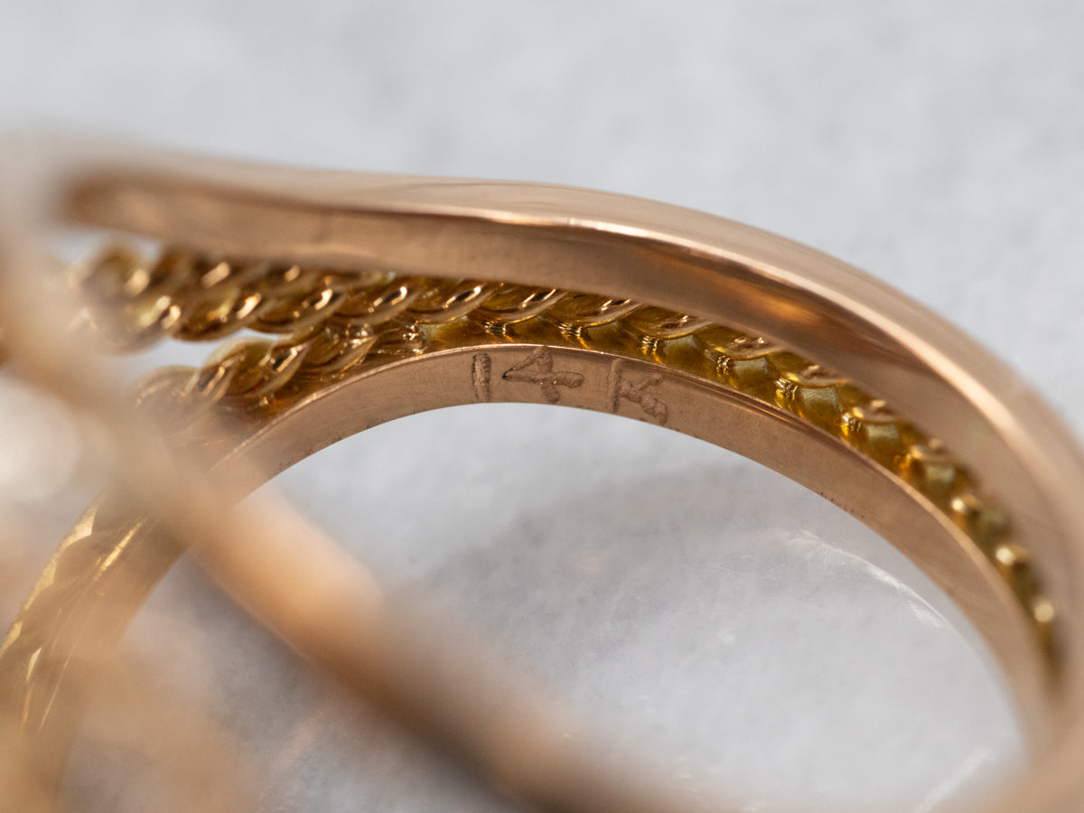 This timeless design is crafted with a gleaming two tone setting and features a garnet gemstone surrounded by sparkling diamond accents. With its classic look and elegant garnet stone, this two-tone garnet cocktail ring is perfect for any occasion.