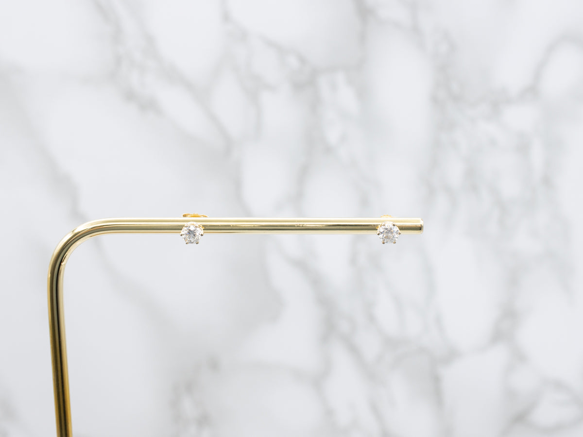 These twinkling yellow gold diamond stud earrings will light up any look! Brimming with sparkle, these earrings are sure to draw admiring glances and fill your wardrobe with a touch of dazzle. Shine bright with these timeless stud earrings!