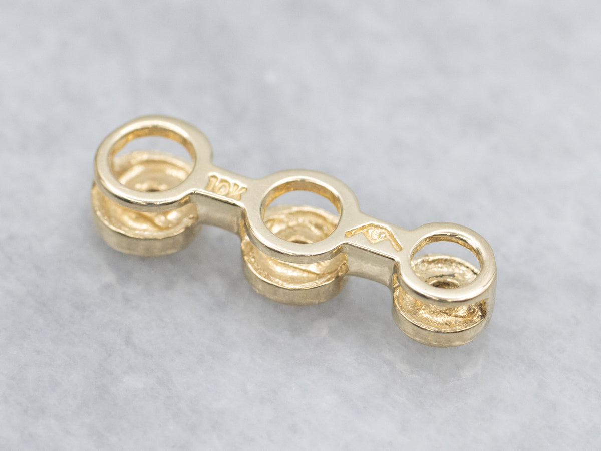 Metal: 10K Yellow and White Gold Gem: 3 Diamonds totaling .05 Carats, H-I in Color, I2 in Clarity Gem Measurements: 1.6 mm, Round Cut Measurements: 5 x 16 mm, with bail Marks: "10K" Stamped on the reverse