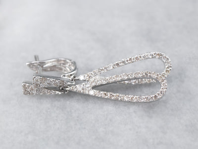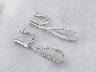 These pretty, minimalist earrings are made of 18k white gold with beautiful little diamonds that glitter and flash. Simple latch back findings maintain the clean lines of the drop silhouette, and keep these earrings safely in your ears while you wear them!