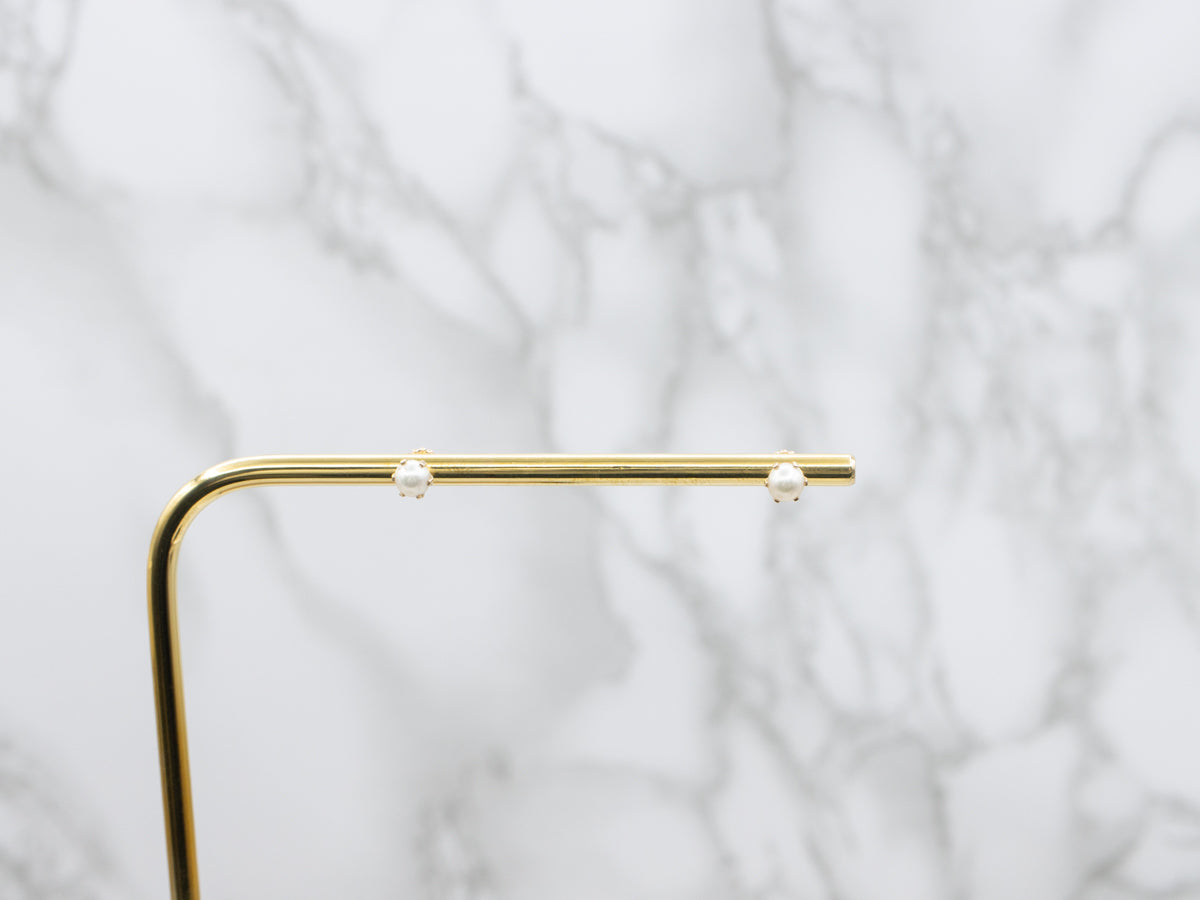 Classic Vintage White Pearl Stud Earrings in Yellow Gold