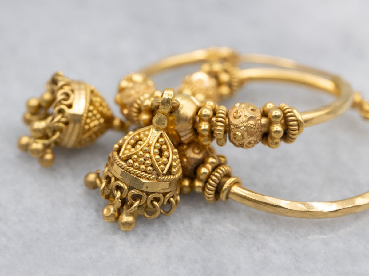 Vintage 22-Karat Gold Beaded Tassel Hoop Earrings