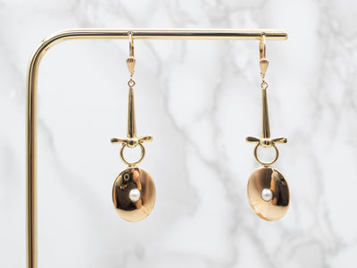 Metal: 14K Yellow Gold, 18K Yellow Gold Gem: 2 Pearls Gem Measurements: 3.8 mm, Round Earrings Width: 15.0 mm Earrings Length: 61.7 mm Marks: "18" Stamped on the reverse