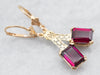 These stunning earrings feature a stylish filigree pattern and two emerald cut rhodolite garnets for an elegant look. Crafted in yellow gold, they're perfect for both casual and formal occasions.