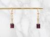 Metal: 14K Yellow Gold Gem: 2 Rhodolite Garnets totaling 4.75 Carats Gem Measurements: 11.2 x 13.2 mm, Emerald Cut Measurements: 11 x 40 mm Marks: "14K*" Stamped on the findings