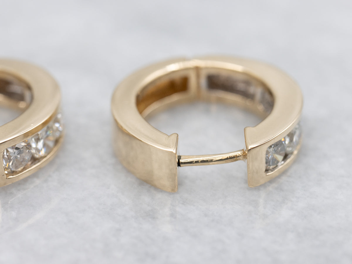 Yellow Gold Channel Set Diamond Hoop Earrings