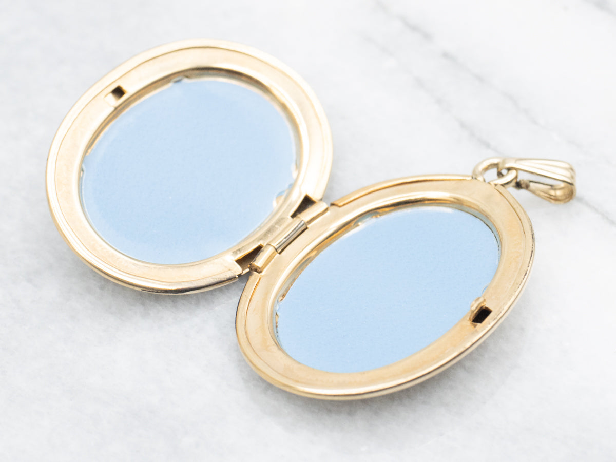 This is a lovely vintage piece, filled with details in the engraved motif on the front. There's space inside for two photos, and the locket slides and closes securely! This would make a lovely gift for a sweet sixteen or for a bride on her wedding day!