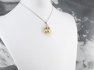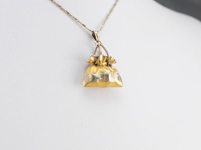 For the lovely lady who has a love for handbags, let us present this stunning vintage piece! Crafted multi-hued gold and set with dove-grey seed pearls this pocketbook charm pendant would make a unique gift!