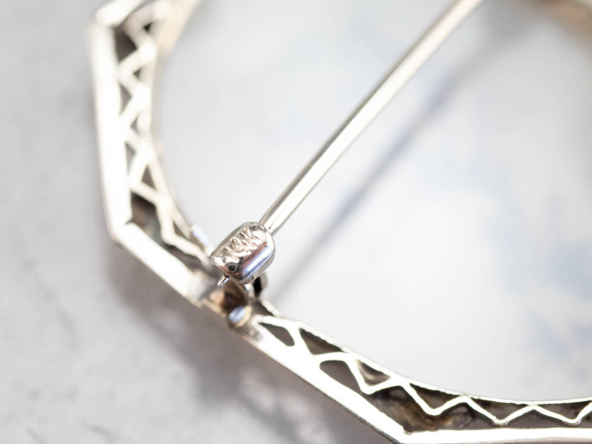 Wow, this is a stunning and rare piece of dendritic agate! Also known as Shazar stone, this gem is a unique white and black-hued agate that has a cool translucent look with a lot of depth. Absolutely breathtaking, this gold filigree pin or pendant is sure to make an impact!