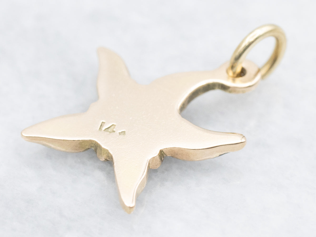 Metal: 14K Yellow Gold Material: Blue Enamel Measurements: 14 x 21 mm, with bail Marks: "14." Stamped on the reverse
