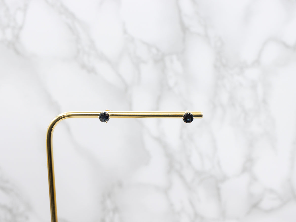 Metal: 14K Yellow Gold Gem: Sapphire Gem Measurements: 5.8 mm, Round Length of Earrings: 6 mm Width of Earrings: 6 mm Marks: "14K" Stamped on the findings