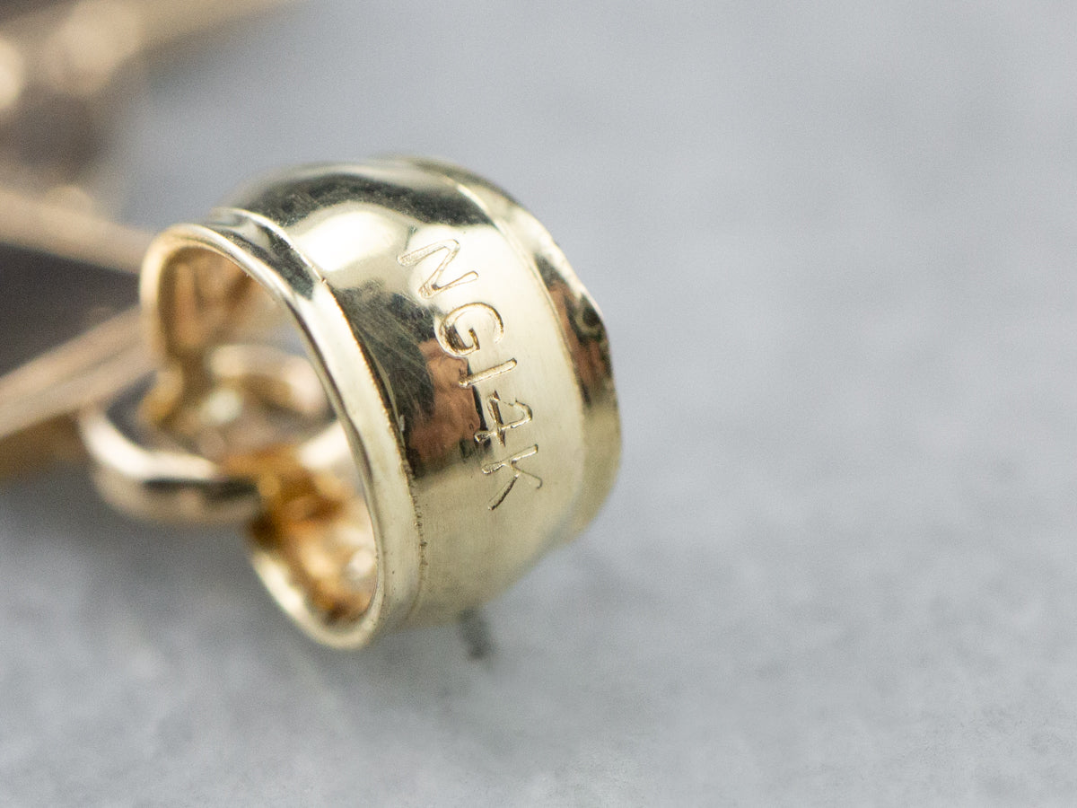 This beautiful Celtic cross has been crafted of 14 karat yellow gold and features a classic design and detailing. The details are simple, with a sleek, traditional style.