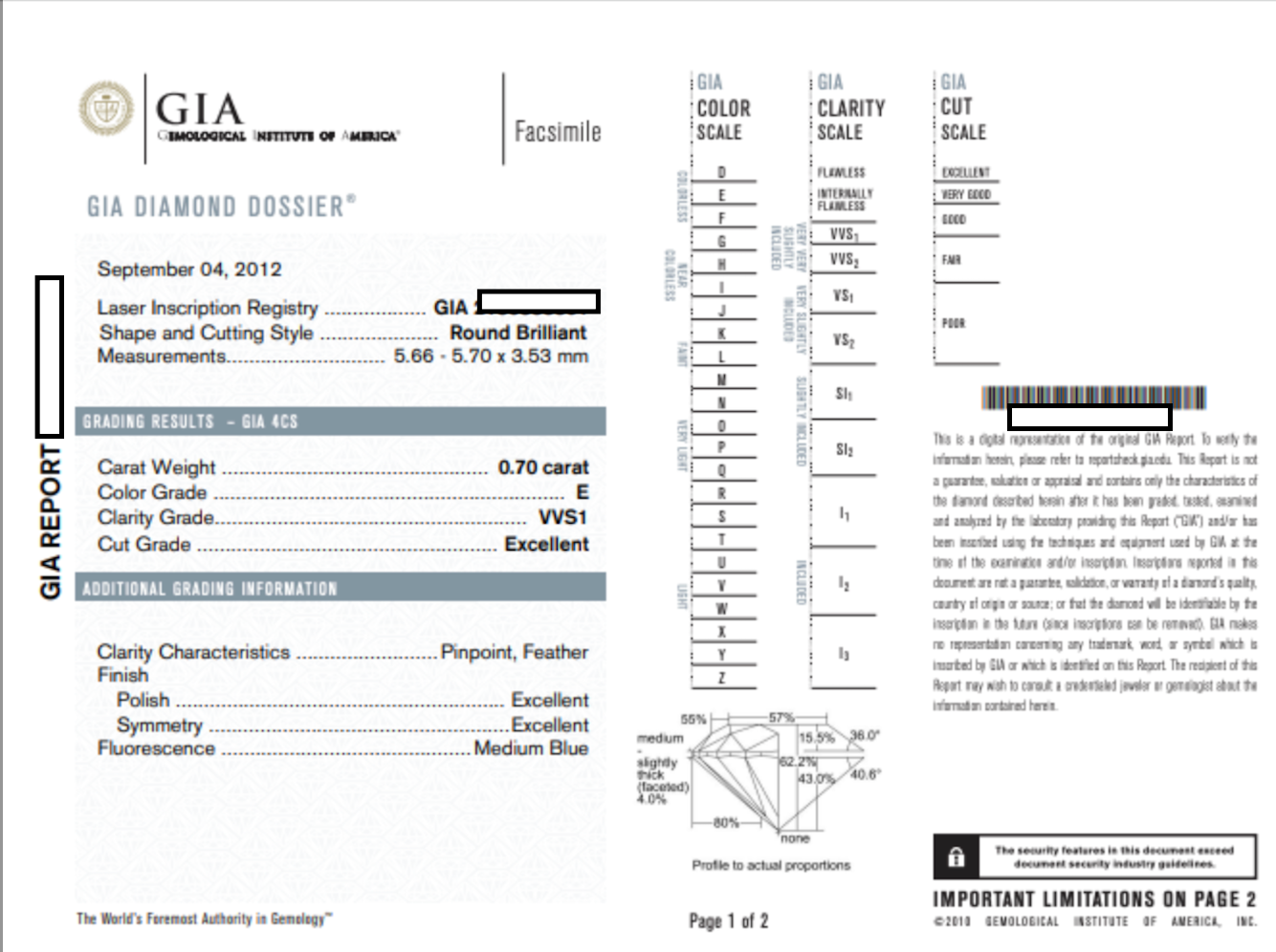 Gem: Diamond .70 Carats, VVS in Clarity, E in Color