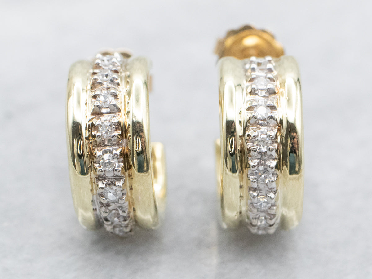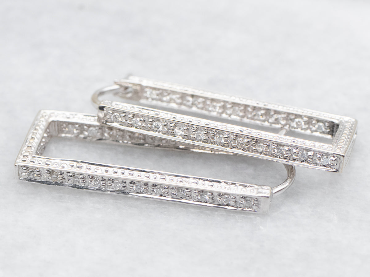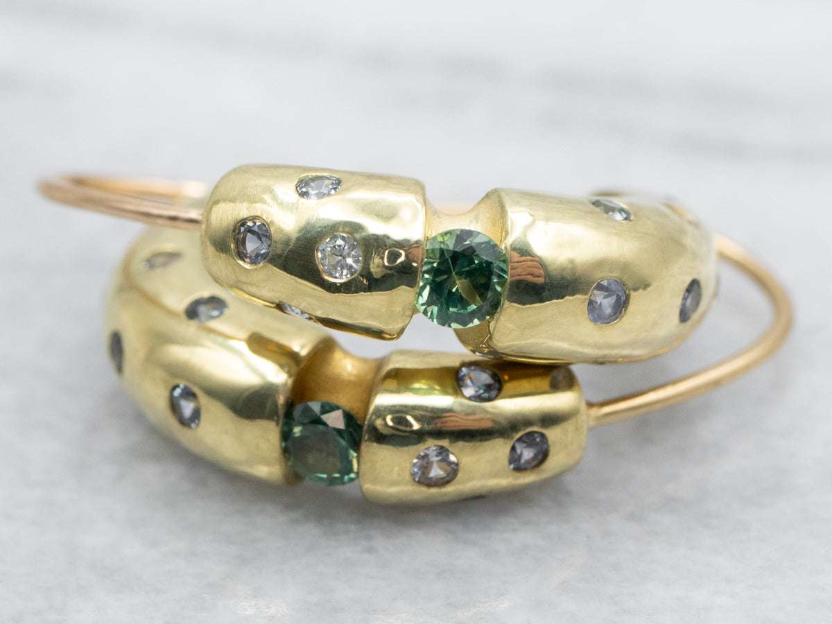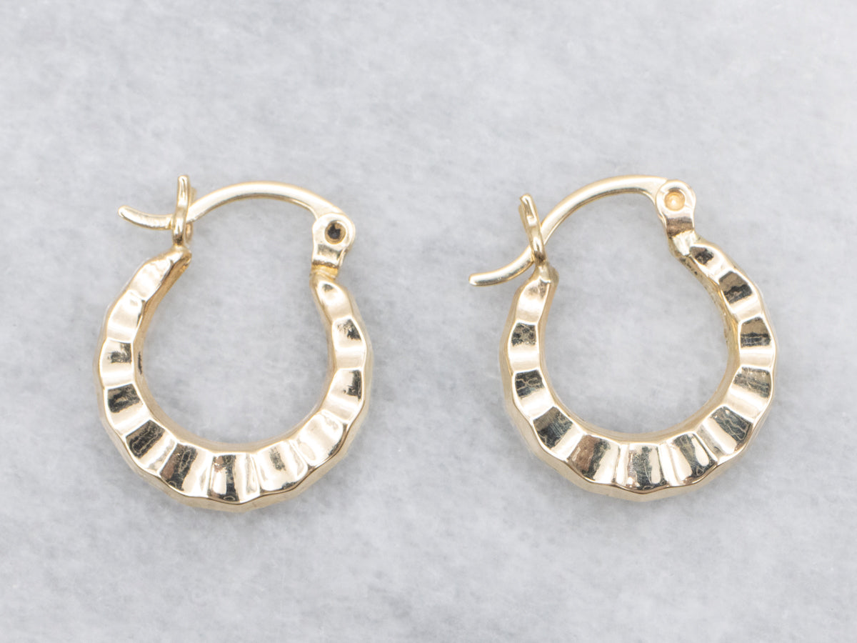 Our hoop earrings showcase a variety of sizes and styles; from petite, subtle hoops perfect for layering, to dramatic large hoops that make a statement. Many pieces feature exquisite vintage craftsmanship, including intricate filigree, engraved details, or gemstone accents like diamonds, sapphires, and pearls.