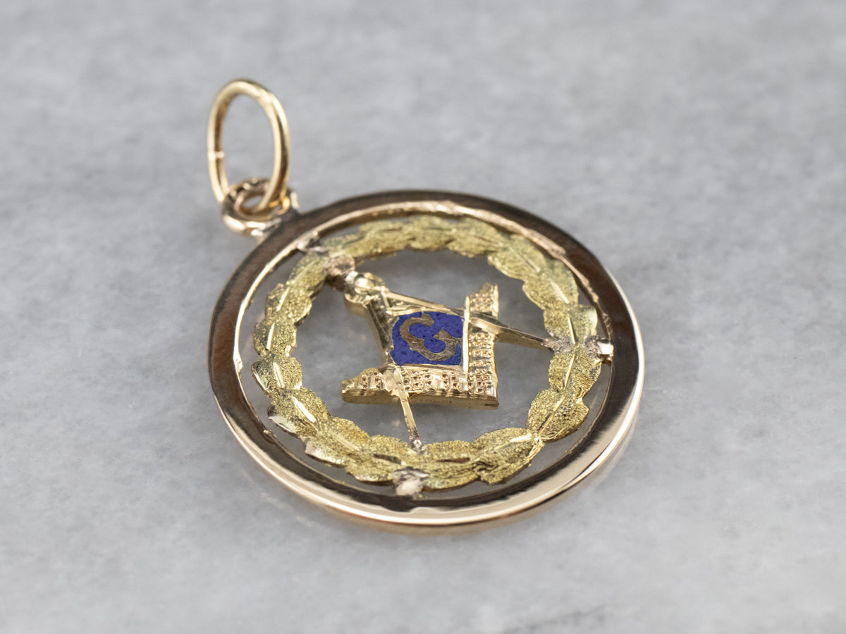 This vintage Masonic pendant is beautifully crafted! This medallion features an openwork, reversible design and is accented by crisp blue enamel.