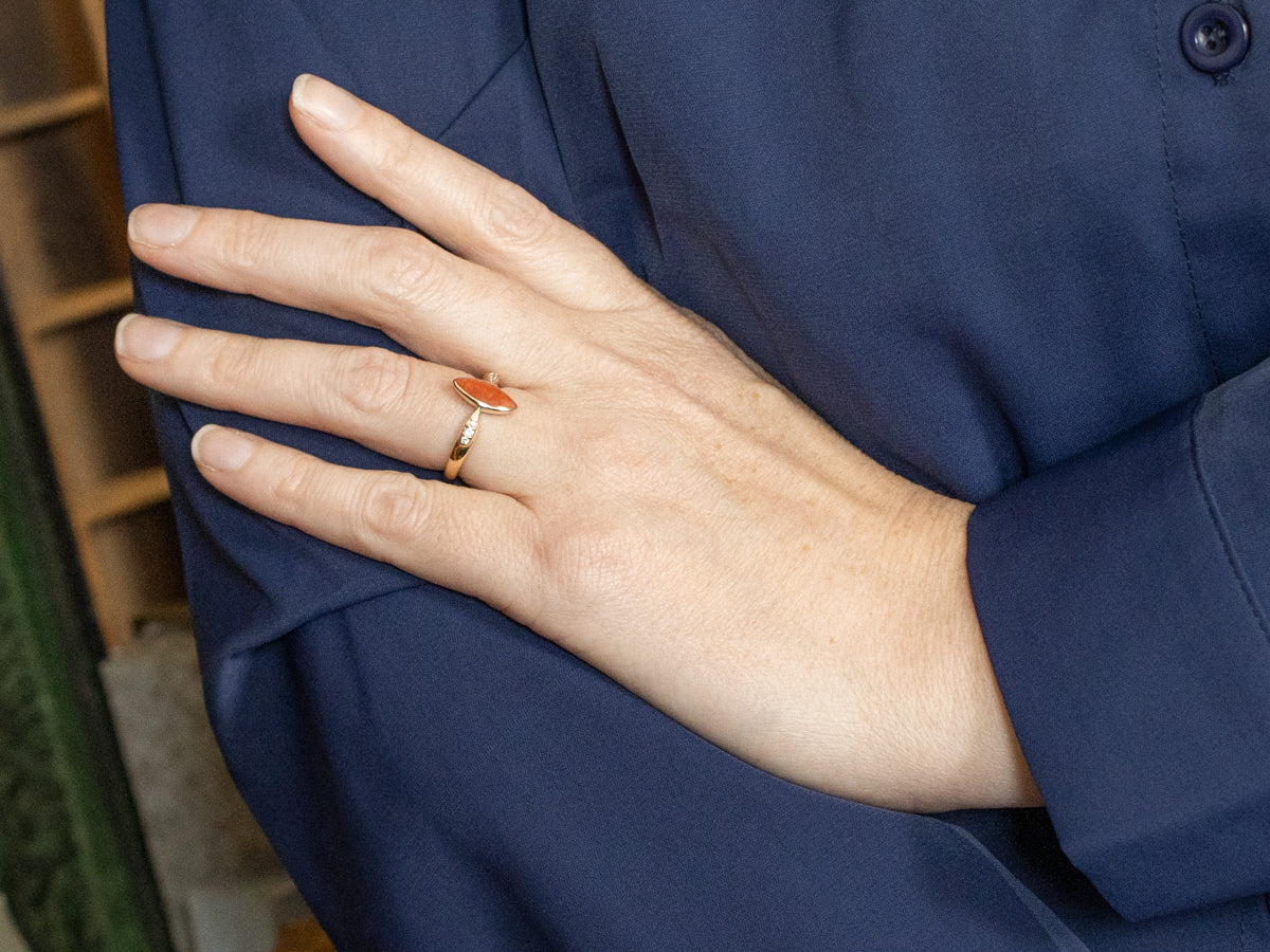 Spiny Oyster Shell and Diamond Gold Kabana Ring