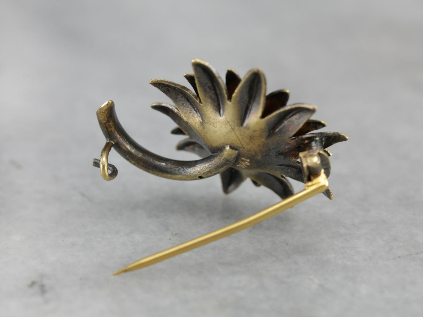 Art Nouveau Old Mine Cut Diamond Sunflower Pin