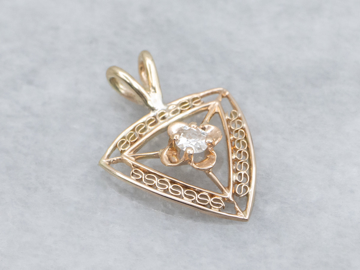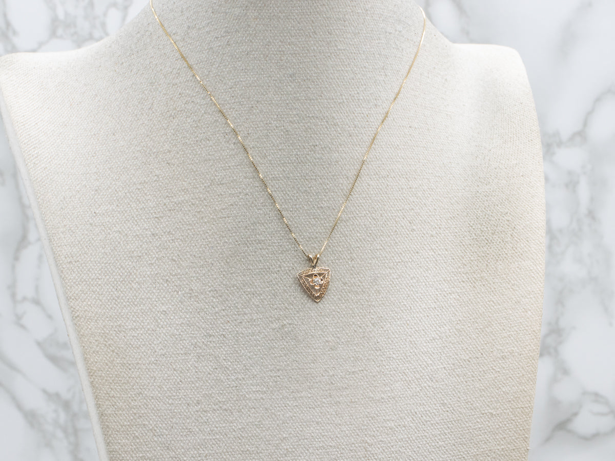 We have taken an antique, old mine-cut diamond stickpin and converted it into this one-of-a-kind pendant. Crafted of warm yellow gold, this is a sweet floral piece, perfect for layering with your other antique treasures!