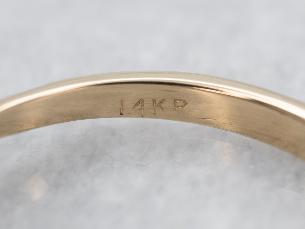 Metal: 14K Yellow and White Gold Gem: Old Mine Cut Diamond .095 Carats, SI2 in Clarity, H in Color Gem Measurements: 3.1 mm, Round Accents: 2 Diamonds totaling .01 Carats, SI in Clarity, G-H in Color Ring Size: 6.75 Marks: "14KP" Stamped on the inside band