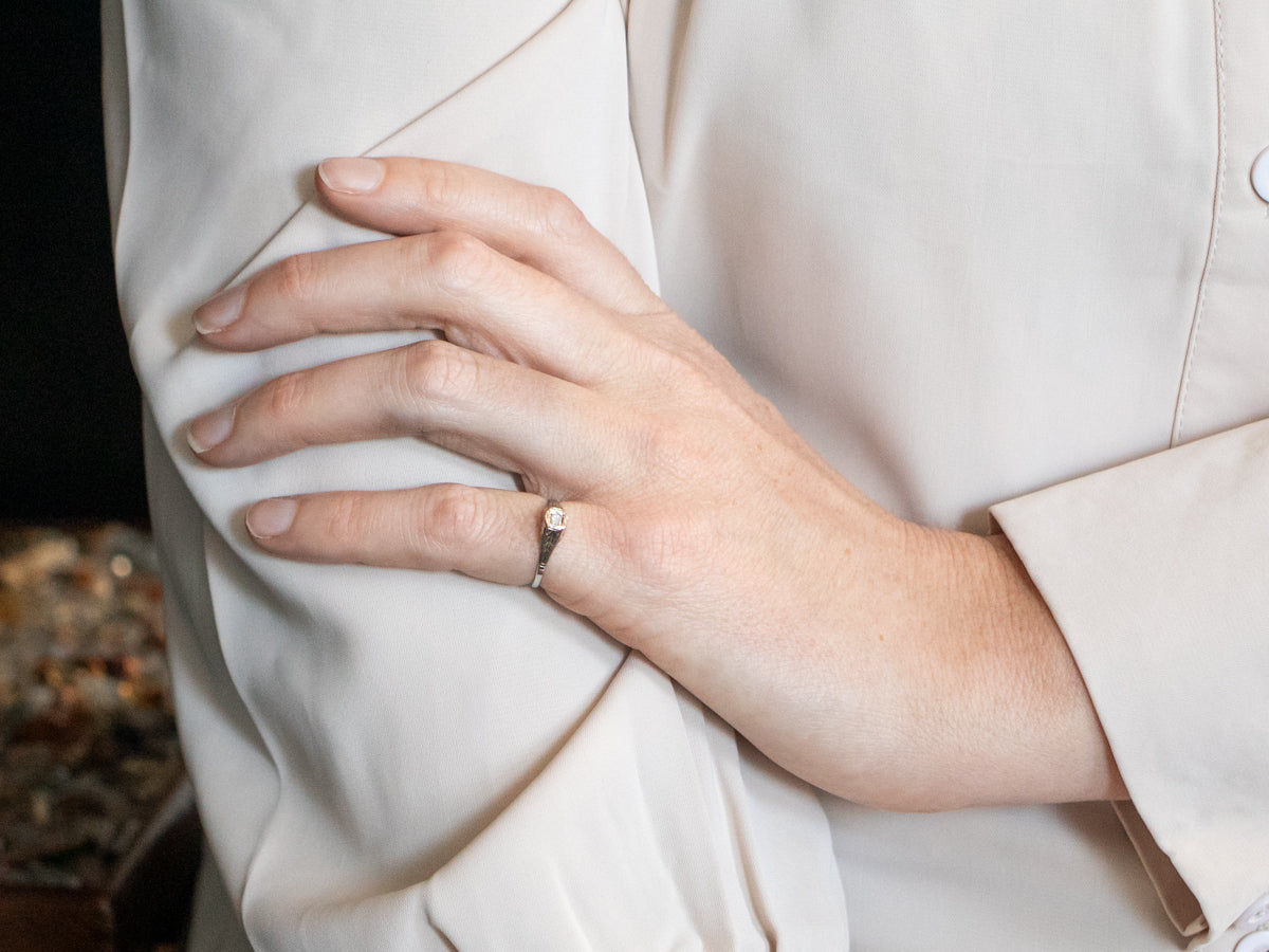 This stunning ring is the perfect way to symbolize your special bond. Crafted in white gold, this ring features an Art Deco design and a striking old mine-cut diamond, creating a timeless and luxurious look.