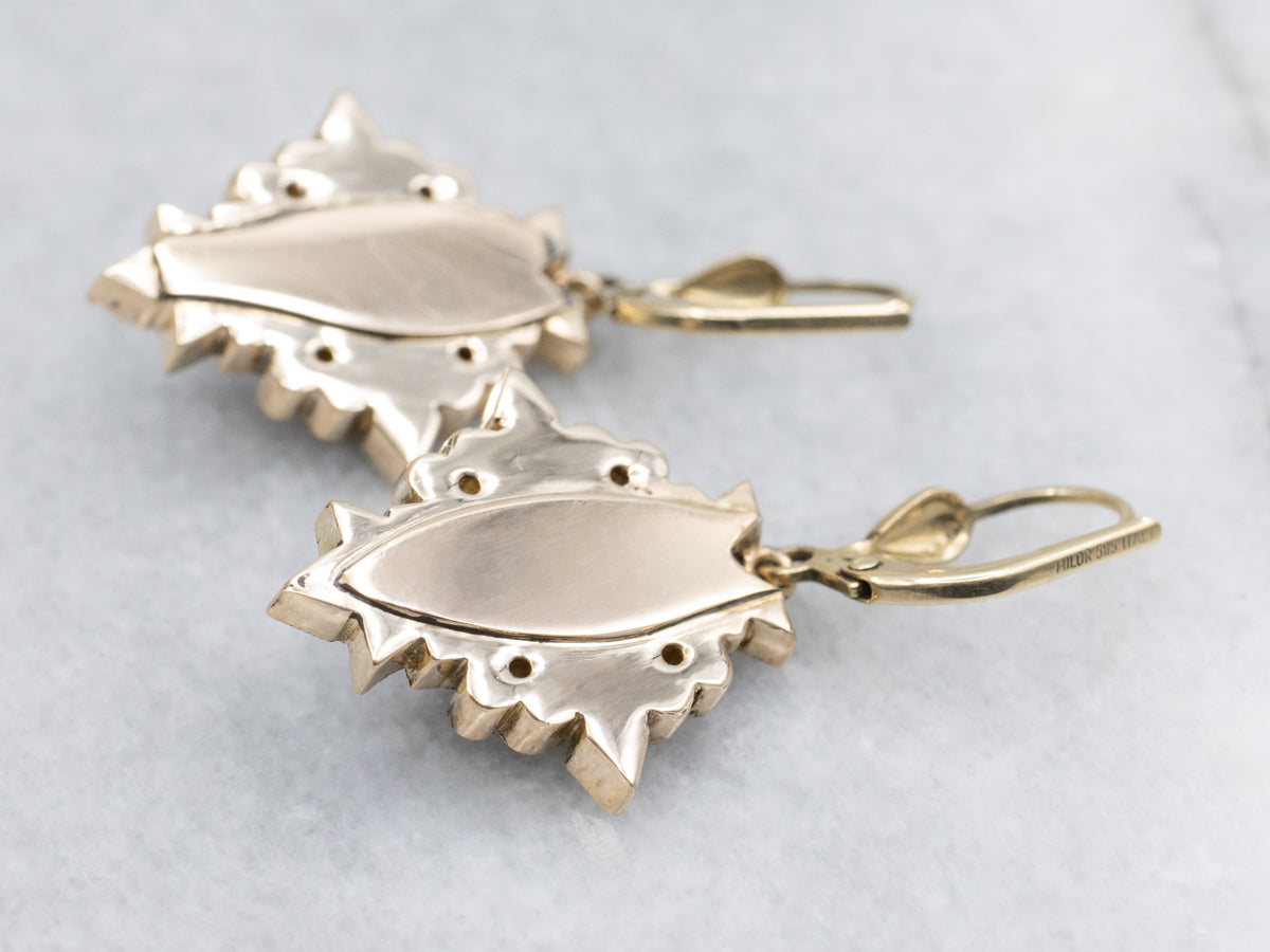 Metal: 14K Yellow Gold Gem: 24 Black Onyx Gem Measurements: 5.9 x 11.8 mm, Emerald Cut Accents: 10 Seed Pearls Length of Earrings: 35.0 mm Width of Earrings: 18.0 mm Marks: "MILOR 585 ITALY" Stamped on the findings