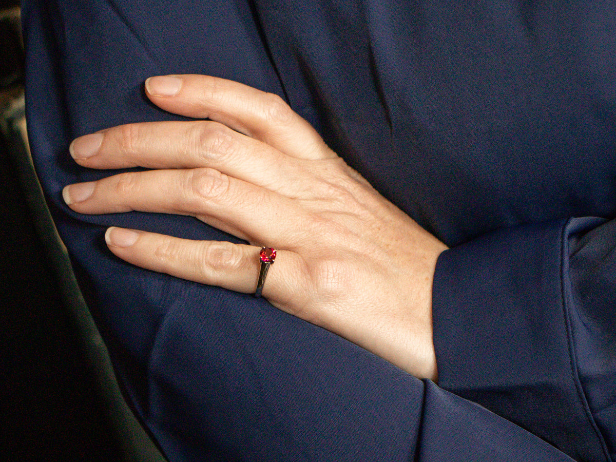 This is one of the most gorgeous tourmaline gemstones that we've seen! True raspberry in hue, the light and color that shines from the center of this stone is astounding! Rather than overwhelm it with decoration, we let it shine to its brightest in a solitaire mounting of white gold.