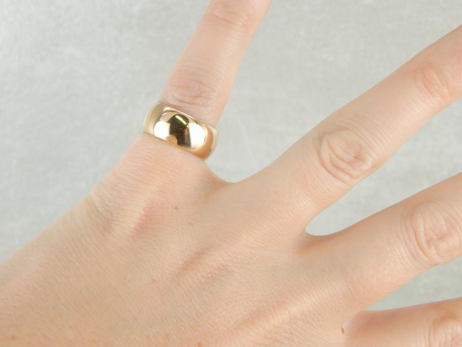 This Victorian wedding band is beautiful in it's simplicity. It's of a large size, suitable for a man or a woman, with a rosy pink hue. Ready to engrave inside or out, this antique piece has a wonderfully soft feel on the finger.