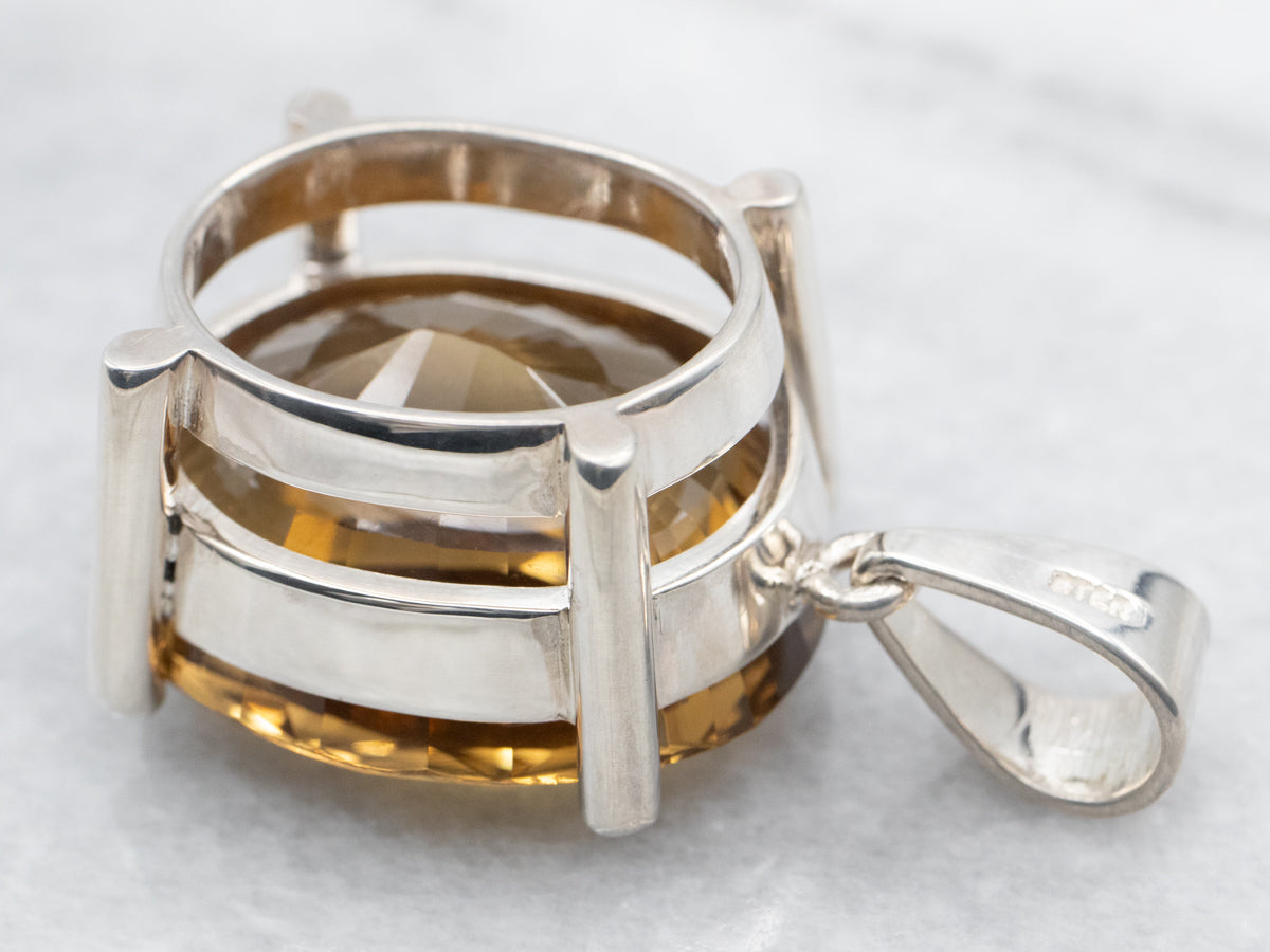 Metal: Sterling Silver Gem: Lemon Quartz Gem Measurements: 22.5 x 27.0 mm, Oval Measurements: 23 x 42 mm, with bail Marks: "STER" Stamped on the bail