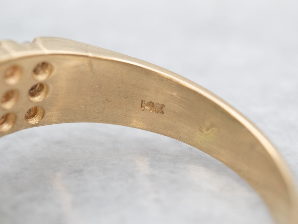 Metal: 14K Yellow Gold Gem: Peridot 8.97 Carats Gem Measurements: 15.4 x 10.8 mm, Oval Accents: 18 Diamonds totaling .50 Carats, H-J in Color, SI in Clarity Ring Size: 10.25 Marks: "14K 3d" Stamped on the inside band