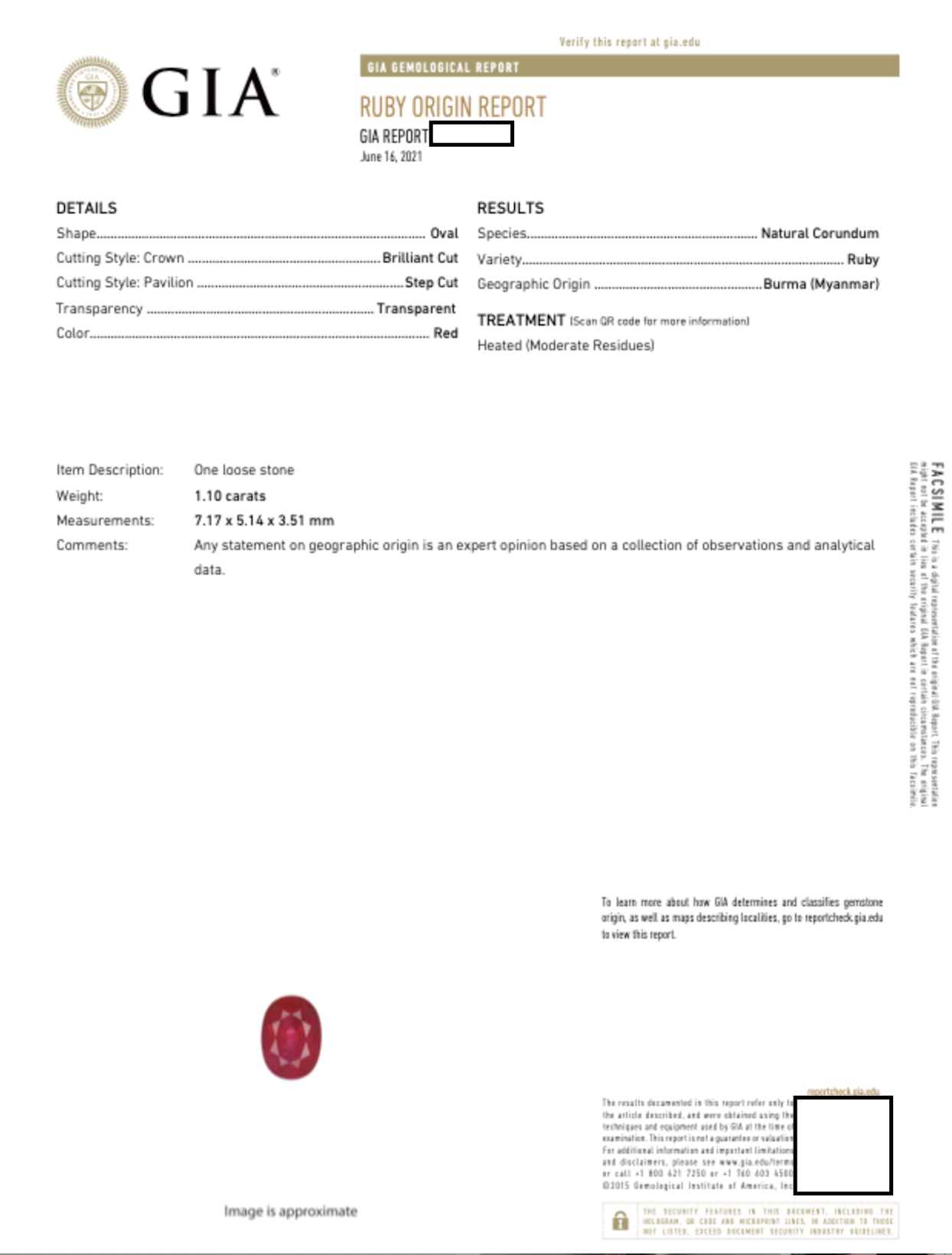Metal: 18K Yellow and White Gold Gem: Burmese Natural Corundum Ruby 1.10 Carats Gem Measurements: 7.1 x 5.1 mm, Oval Accents: 14 Diamonds totaling 0.14 Carats, G in Color, SI in Clarity Ring Size: 8 Marks: "LR 18K" Stamped on the inside band GIA Report Number: 621*********