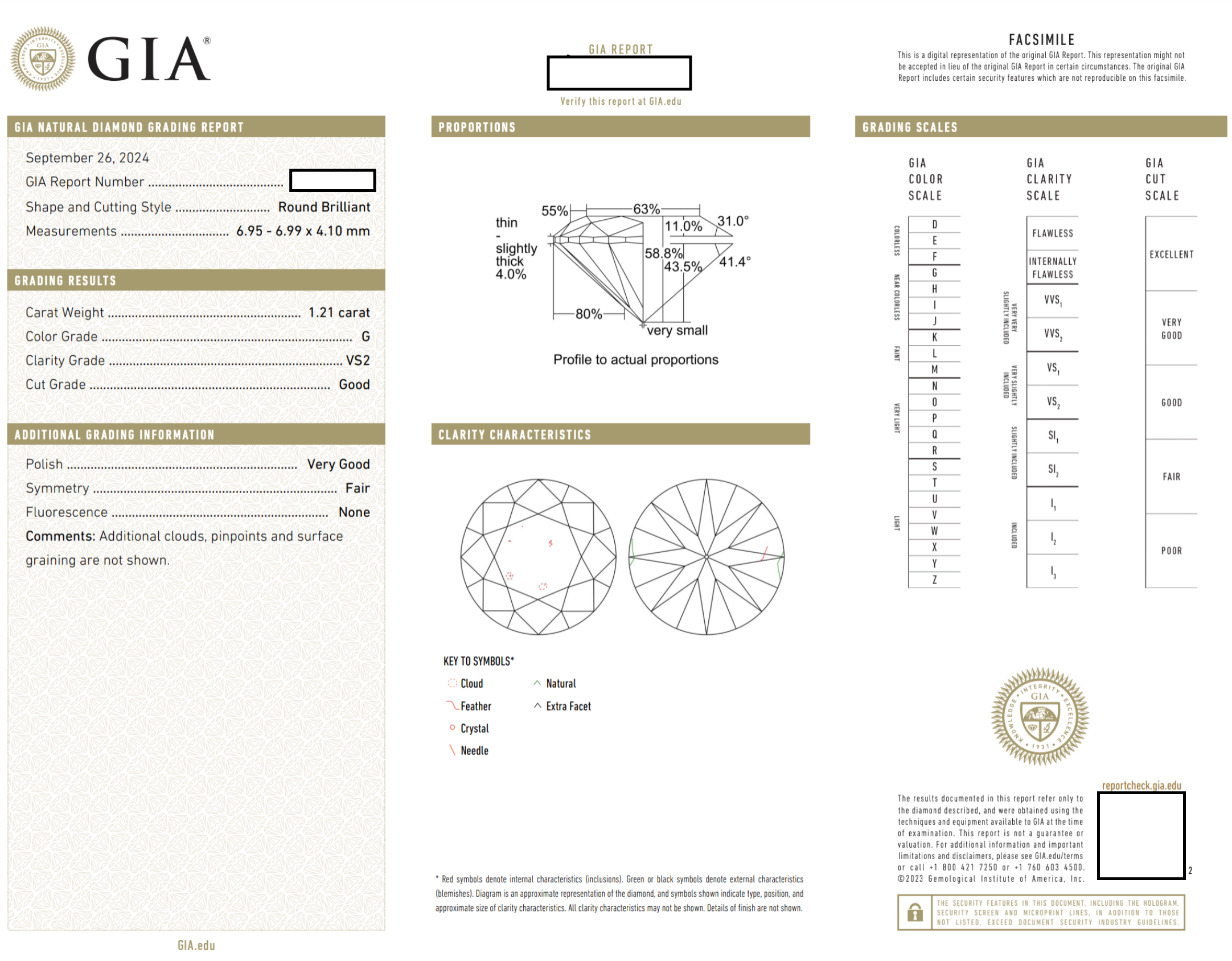 Metal: Platinum Gem: Diamond 1.21 Carats, VS2 in Clarity, G in Color Gem Measurements: 6.9 mm, Round Accents: 2 Sapphires Ring Size: 9.25 Marks: "PLAT" Stamped on the inside band GIA Report Number: 223********