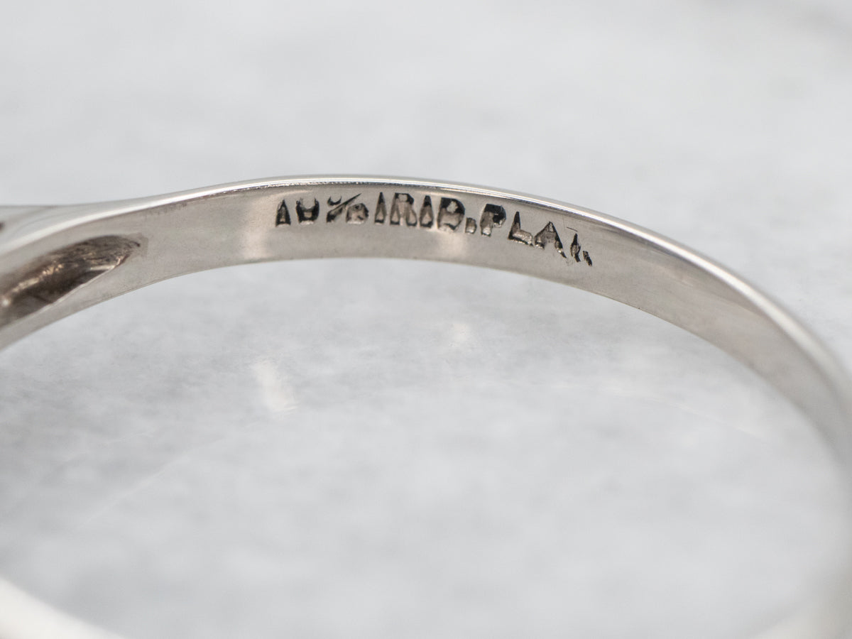 Metal: Platinum Gem: Sapphire 1.05 Carats Gem Measurements: 6.0 mm, Round Accents: 2 Diamonds totaling .08 Carats, VS-SI in Clarity, G-H in Color Ring Size: 7.50 Marks: "10% IRID PLAT" Stamped on the inside band