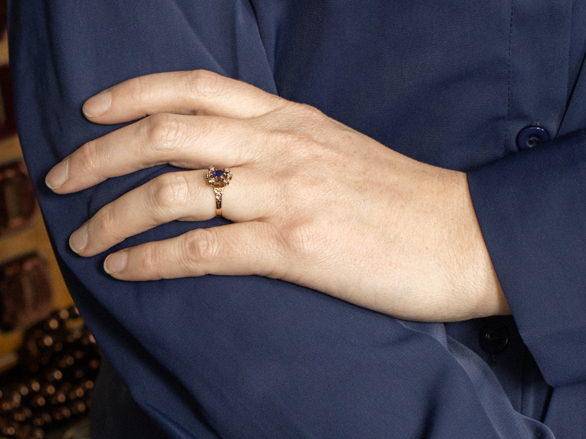 Antique Victorian Sapphire Ring with Original Rose Cut Accent Diamonds