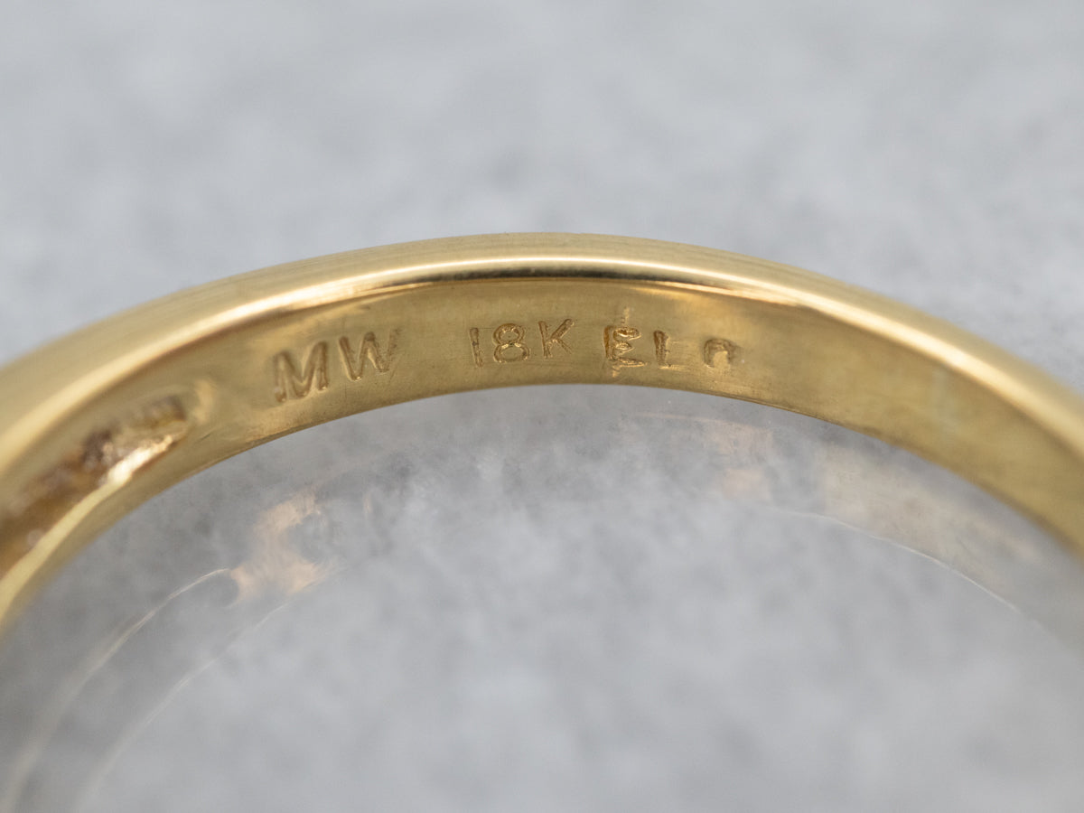 Metal: 18K Yellow Gold, Platinum Gem: Purple-Pink Sapphire 1.675 Carats Gem Measurements: 6.5 mm, Round Accents: 6 Diamonds totaling .44 Carats, SI-I in Clarity, H in Color Ring Size: 4.75 Marks: “MW 18K EI” Stamped on the inside band