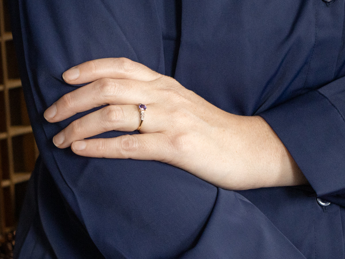 1950s Purple Sapphire and Diamond Ring