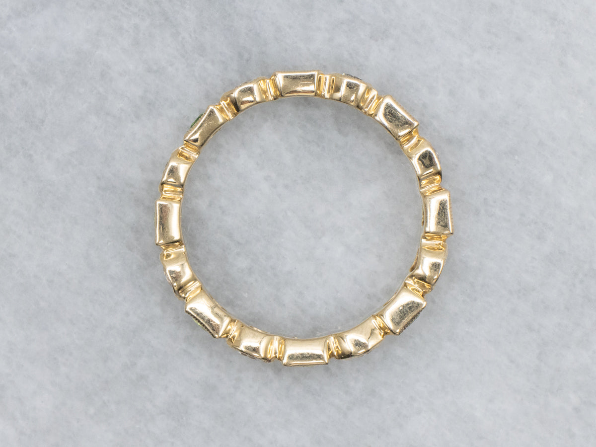 Tsavorite Garnet and White Sapphire Gold Eternity Band