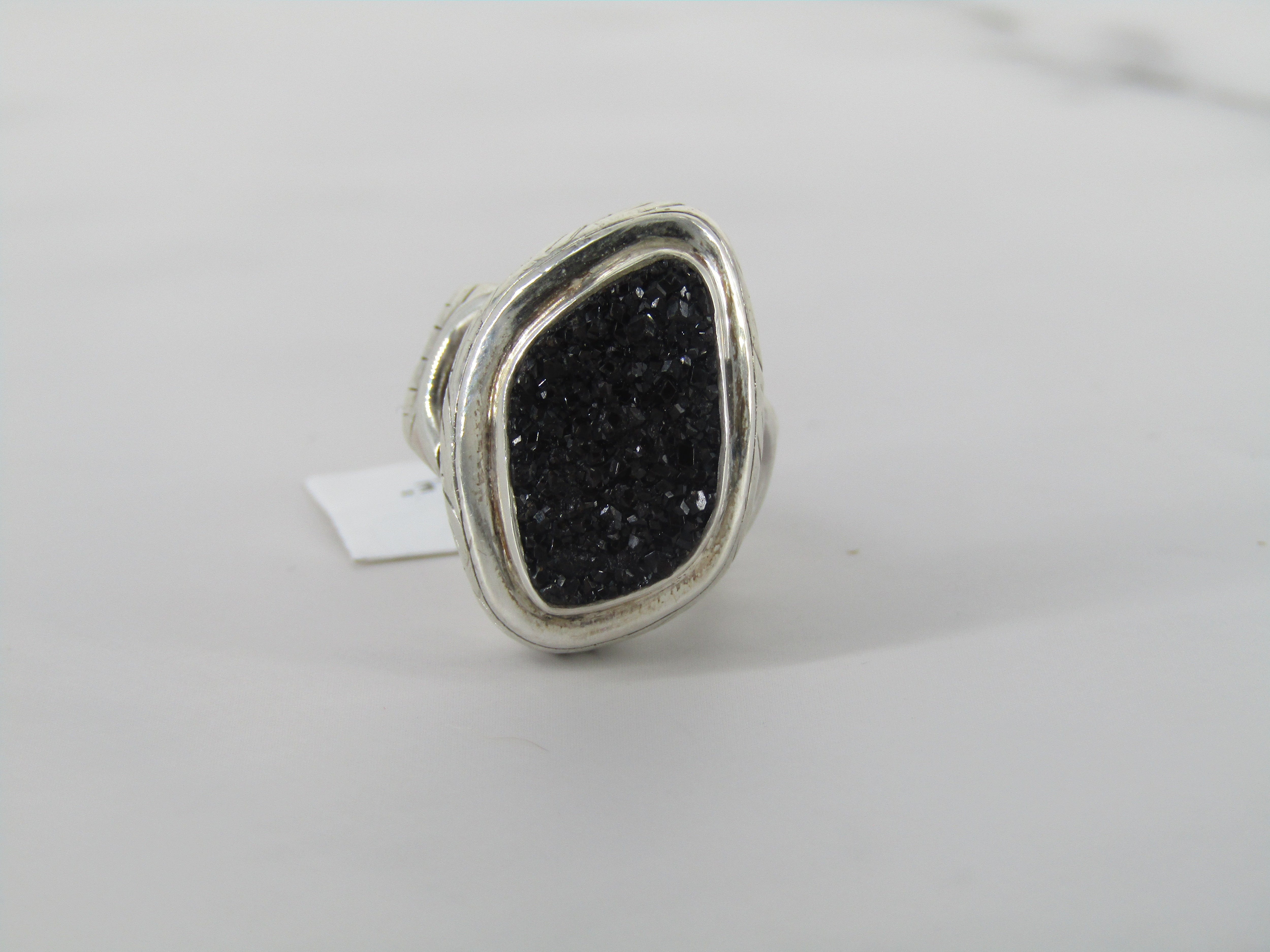 Sterling silver ring with marcasite. Different engraved patterns and designs throughout the ring.