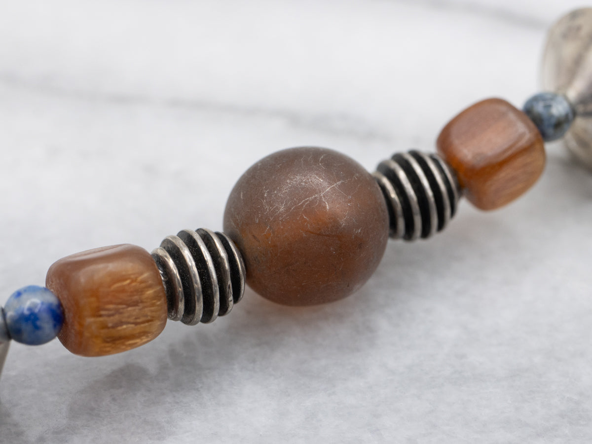 Sodalite and Glass Beaded Antique Silver Necklace