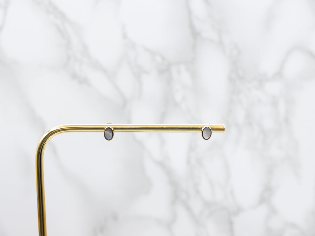 Metal: 14K Yellow Gold Gem: 2 Mother of Pearl Gem Measurements: 3.7 x 5.8 mm, Oval Cut Measurements: 5 x 7 mm Marks: "14K" Stamped on the reverse