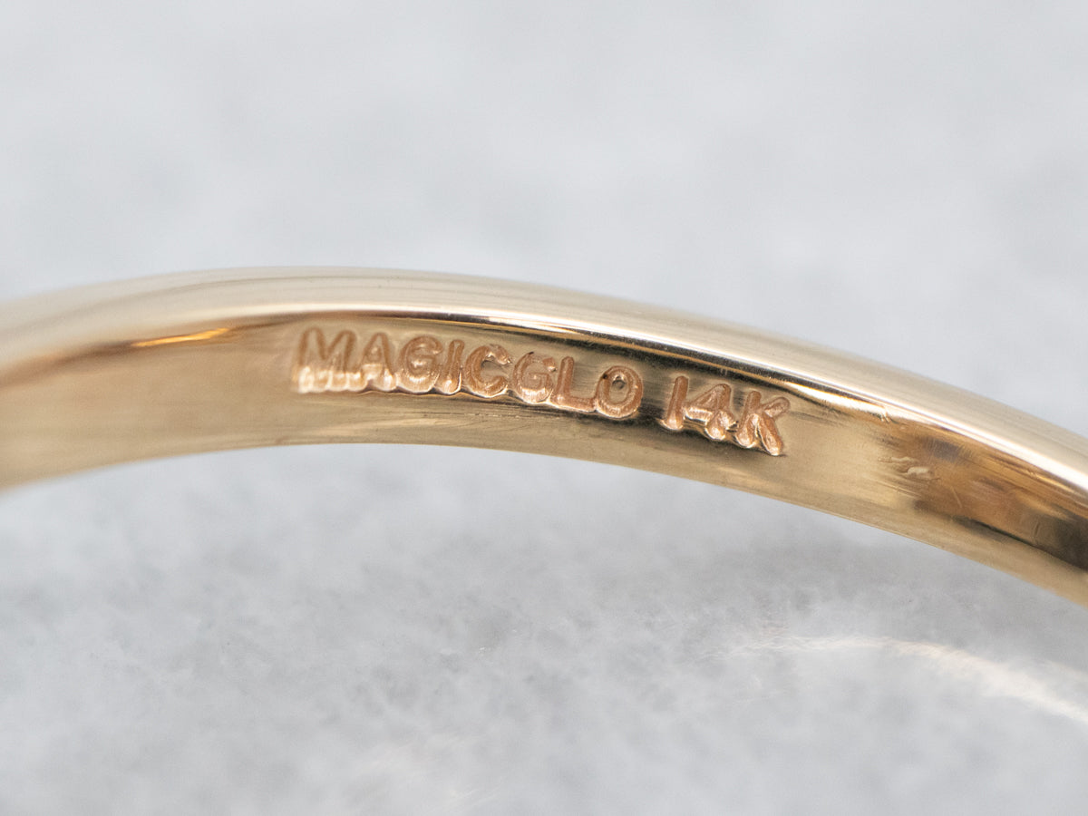 Metal: 14K Yellow Gold Gem: Tanzanite 1.63 Carats Gem Measurements: 10.2 x 4.9 mm, Marquise Cut Accents: 12 Diamonds totaling .30 Carats, SI in Clarity, H in Color Ring Size: 5.25 Marks: “MAGIC GLO 14K” Stamped on the inside band
