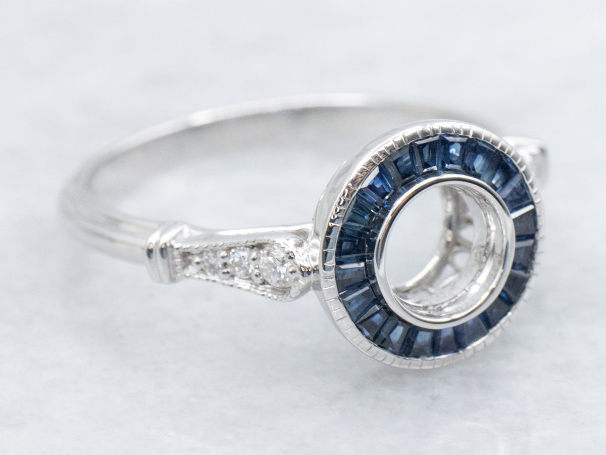 The Fairway Sapphire and Diamond Halo Semi-Mount Ring